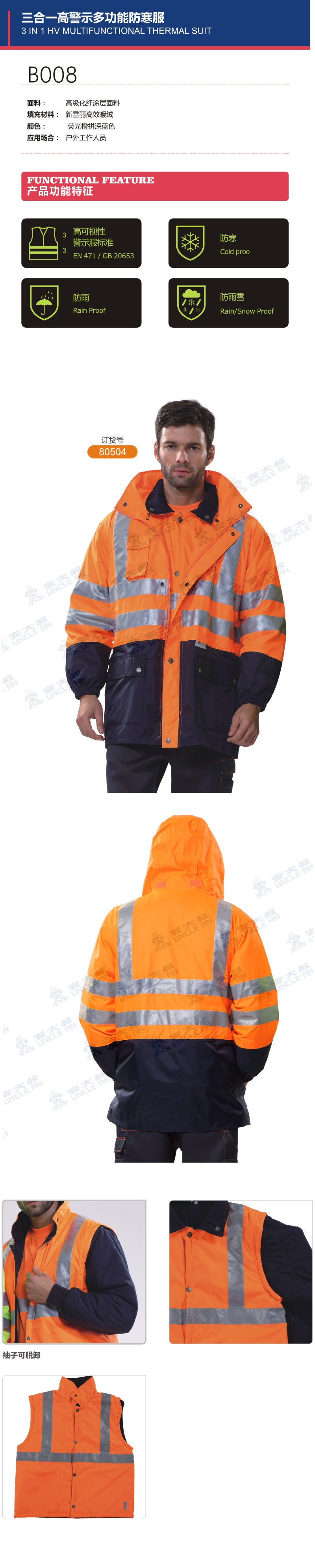 三合一高警示多功能防寒服