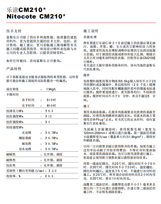 樂(lè)涂Nitocote CM210彈性水泥基涂料