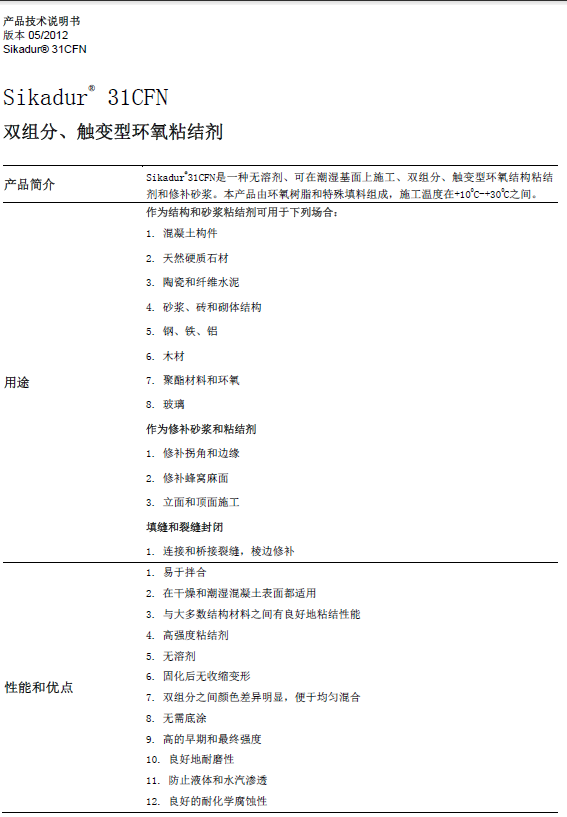 Sikadur 31CFN 雙組分觸變型環(huán)氧粘結(jié)劑