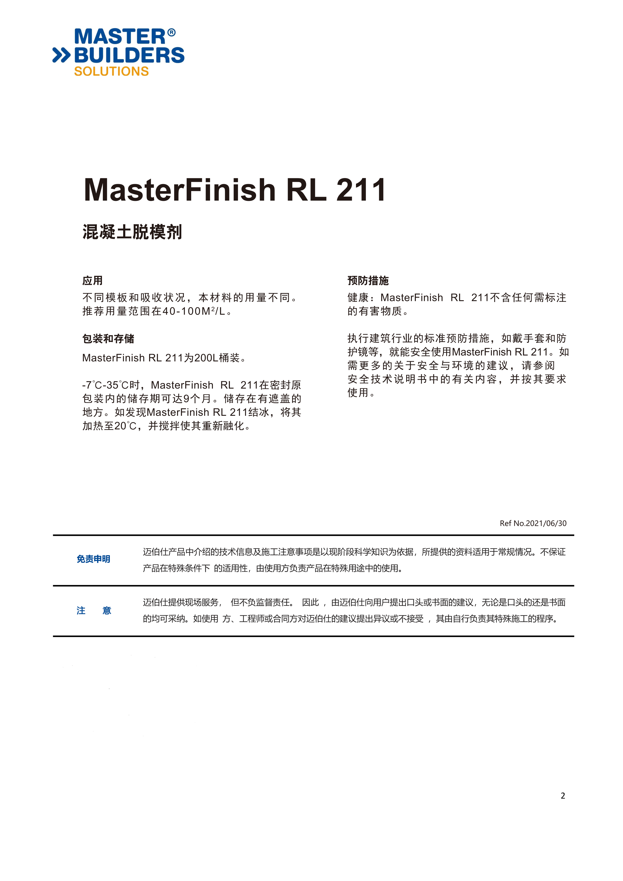 巴斯夫脫模劑 MasterFinish RL 211