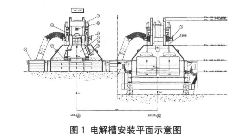 伊朗Hormozal 電解鋁廠擴建工程,位于伊朗南部港口城市阿巴斯Almahdi 冶煉廠內(nèi),此電解鋁廠將形成兩個平行結(jié)構(gòu)、跨度為20m 的車間內(nèi),其中每個電解車間有114 臺電解槽,共有228 臺,年產(chǎn)量為15×104t。本工程為意大利FATA公司總承包,七冶建設(shè)有限責(zé)任公司參與了電解車間安裝(見圖1)工作,整個工程采用采用阿聯(lián)酋迪拜鋁業(yè)D20技術(shù),施工標(biāo)準(zhǔn)按照相應(yīng)的歐、美標(biāo)準(zhǔn)執(zhí)行。